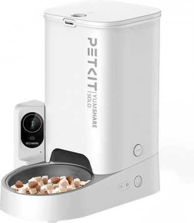 Dozator hrane Petkit Yumshare Solo omogućuje vam praćenje i komunikaciju s vašim ljubimcem zahvaljujući ugrađenoj kameri i mikrofonu. S aplikacijom PETKIT možete planirati hranjenje za svaki dan u tjednu, podešavati porcije i provjeravati status uređaja.
