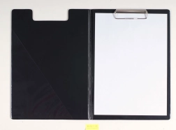 Zatvoriva podloga za pisanje s metalnom kopčom, izrađena od ekstra čvrste lepenke s unutarnjim prozirnim džepom.
