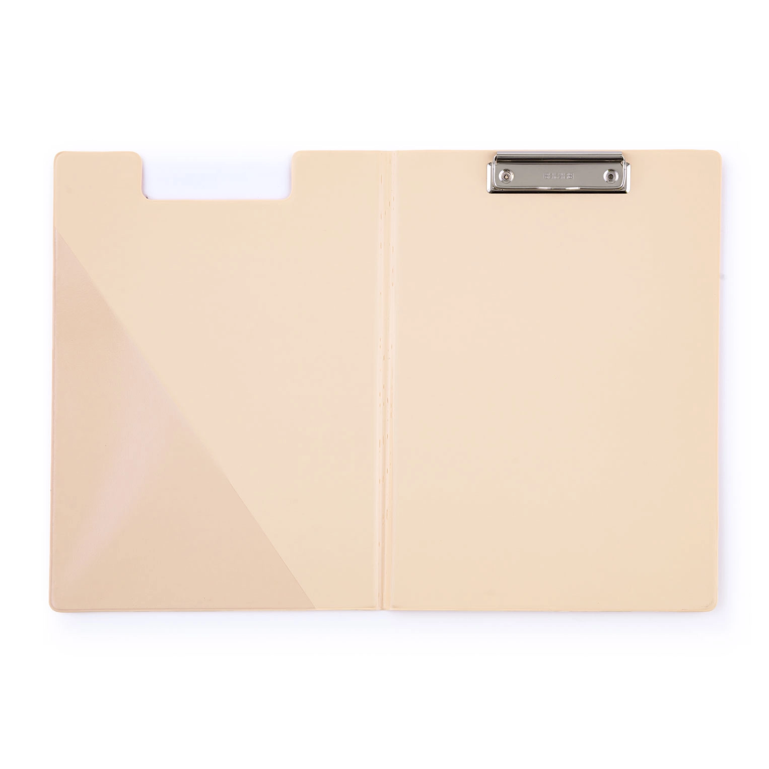 Zatvoriva pisaća podloga s metalnim klipom izrađena od čvrstog kartona. Nudi moderne pastelne boje i unutarnji prozirni džep za jednostavno organiziranje dokumenata.