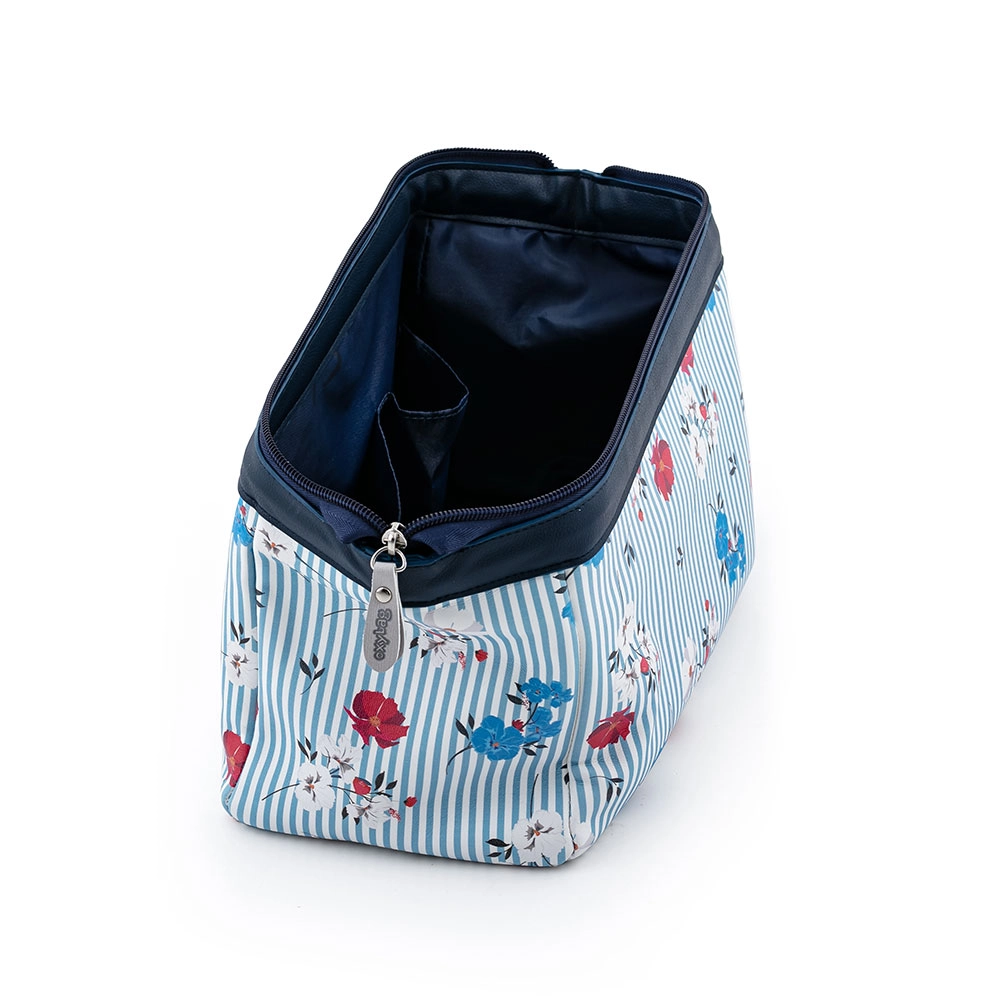Kozmetička torbica Holiday Navy s elegantnim cvjetnim uzorkom stvorena je za moderne žene koje žele imati svoje kozmetičke potrepštine uvijek pri ruci. Materijal torbice je izdržljiv i lako se čisti, što je čini idealnim pratiteljem na odmoru i za svakodnevnu upotrebu.