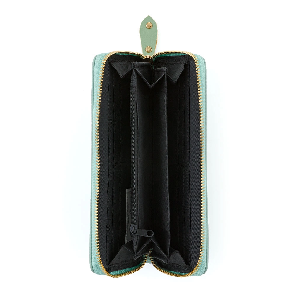 Elegantna i praktična ženska novčanica Mony L u mint boji nudi dovoljno prostora za vašu gotovinu i kartice. Unutra ćete pronaći 8 pretinaca za kartice vjernosti, 2 veća džepa i 3 odvojena pretinca za gotovinu, uključujući zatvorivi džep na patentni zatvarač za sitniš.