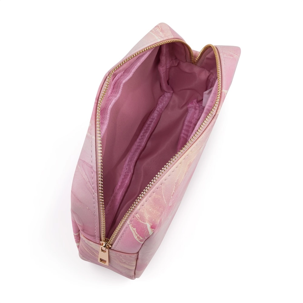 Tražite stilski dodatak koji će držati vašu opremu na okupu? Ova putna kozmetička torbica s modernim mramornim uzorkom spaja jednostavan dizajn i praktičnost. Pregledno prima osnovni make-up i higijenske potrepštine kako bi vam uvijek bile pri ruci kod kuće i na putu.