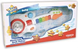 Svjetlosni efekti dodaju zabavu i energiju pri svakoj svirci. Napajanje osiguravaju 3 R6 / AA 1,5V baterije, koje nisu uključene u pakiranje. Gitara je prikladna za djecu od 1,5 godine i dimenzija je 17 x 40 x 5 cm.
