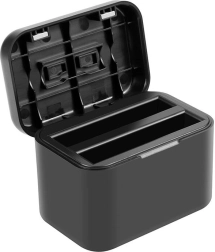 Prilagođeno potrebama korisnika Insta360 X4, ovo univerzalno kućište omogućuje punjenje i skladištenje memorijskih kartica, osiguravajući njihovu maksimalnu zaštitu. Posjeduje dvostruki utor za punjenje s nezavisnim napajanjem, koji omogućuje istovremeno punjenje dvije baterije. Kućište štiti od preopterećenja i osigurava sigurnost zahvaljujući inteligentnom upravljanju punjenja. Ugrađena svjetla pokazuju stanje: crveno signalizira punjenje, zeleno potpuno napunjenje. Baterije nisu uključene u paket.