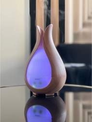 Kompaktan ultrazvučni ovlaživač i aroma difuzor zapremnine 200 ml stvara finu hladnu maglicu za ugodnu klimu u prostoriji. Nudi dvije razine rada (neprekidni i isprekidani), timer (1 h, 3 h, kontinuirano), daljinsko upravljanje za udobno podešavanje, 7 boja LED pozadinskog osvjetljenja s dvije nijanse i tih rad 30–36 dB. U pakiranju se nalaze i 3 eterična ulja (lavanda, more, ruža) za opuštajuću aromaterapiju.