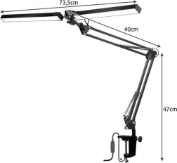 Lampa je opremljena dvostrukim izvorom svjetla, kojeg možete neovisno podesiti i osvijetliti dva različita radna mjesta istovremeno. Ruka je potpuno podesiva, što osigurava visoku fleksibilnost korištenja.