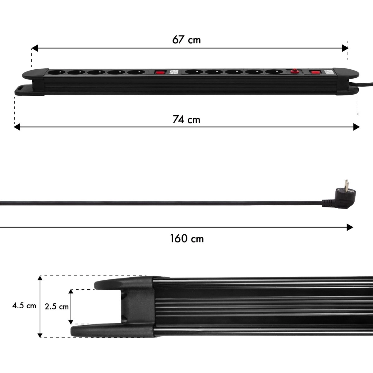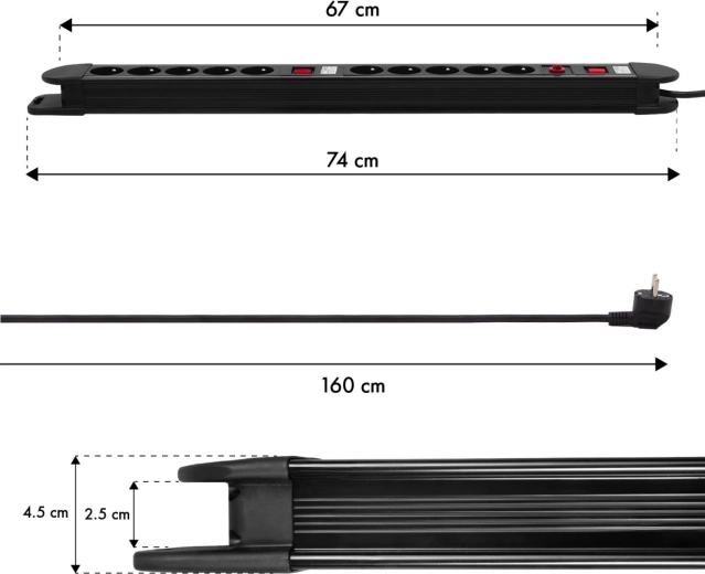 Proširite napajanje svojih uređaja pametno i sigurno. Ova robusna napojna letva s 10 uzemljenih utičnica nudi fleksibilno upravljanje potrošnjom zahvaljujući dvama zasebnim prekidačima – svaka polovica letve radi neovisno. Zaštitu osigurava ugrađeni automatski osigurač, koji pri preopterećenju ili kratkom spoju odmah reagira.