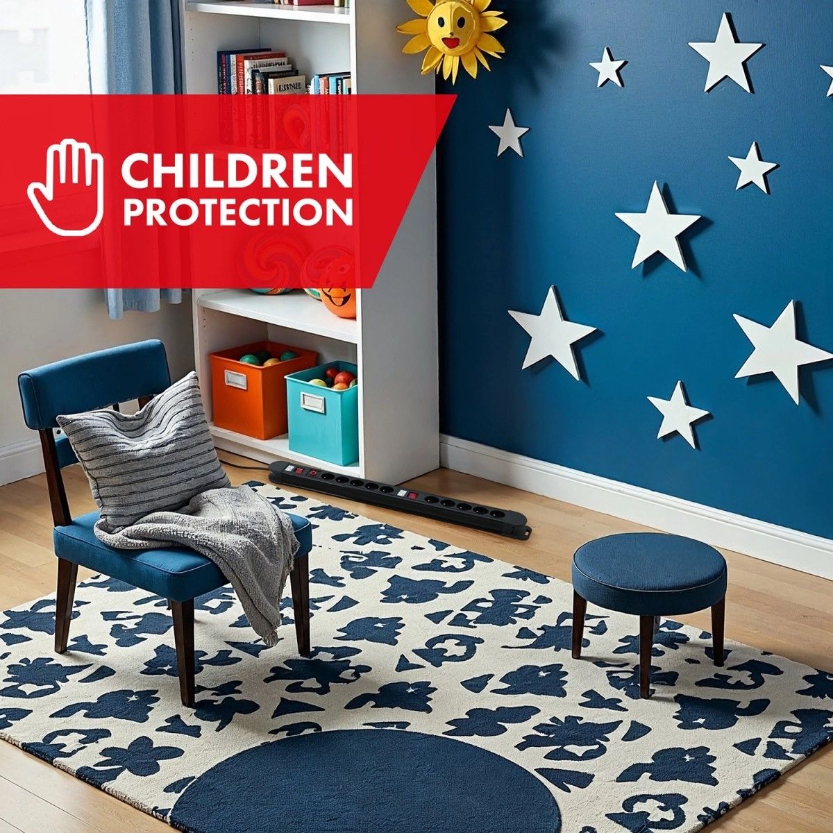Ugrađeni automatski osigurač štiti od preopterećenja i kratkog spoja, a zaštita za djecu sprječava umetanje stranih predmeta u utičnice.