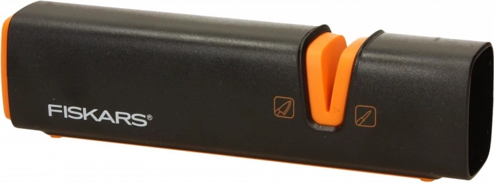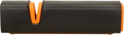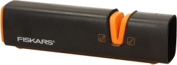 Kompaktan i učinkovit oštrač noževa marke FISKARS za svakodnevno održavanje kuhinjskih oštrica. Zahvaljujući keramičkim brusnim kamenima i fiksnom kutu brušenja brzo postižete glatko i iznimno oštro sječivo. Protuklizna baza osigurava sigurnost i stabilnost pri radu, a obostrano upravljanje je ugodno za dešnjake i ljevake.