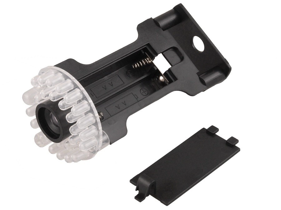 Atrapa kamere IR9000 B IR LEDVrlo uspješna kopija originalne kamere s imitacijom IR LED i crvenom svjetlećom diodom (napajana s 2 mala baterijska članka).Materijal: ABS