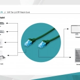 Ovaj patch kabel U/UTP kategorije 5e duljine 3 m u zelenoj boji idealan je za povezivanje mrežnih uređaja, osiguravajući brz i stabilan prijenos podataka.