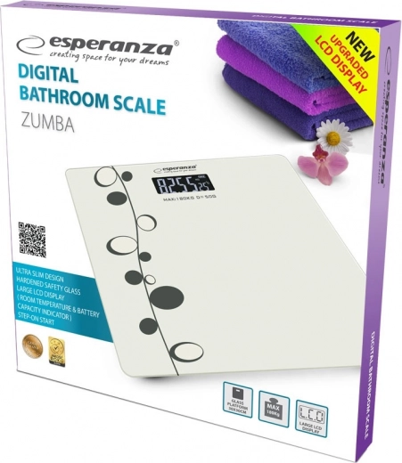 Održavajte kontrolu nad svojom tjelesnom masom uz vagu ESPERANZA ZUMBA. Ultra tanko kućište s kaljenim staklom debljine 6 mm uklapa se u svaku kupaonicu, dok veliki i štedljivi LCD zaslon osigurava izvrsnu čitljivost. Vrlo precizni Strain Gauge senzori pružaju pouzdane rezultate s točnošću od 100 g.