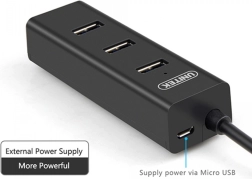 Elegantni i kompaktni HUB u plastičnom kućištu bit će ukras svakog radnog stola, bilo kod kuće ili u uredu. Hub se napaja izravno iz USB sučelja i podržava tehnologiju punjenja BC1.2, koja inteligentno podešava napon i brine se da se napajanje isključi nakon punjenja baterije. Time se produljuje vijek trajanja punjenih baterija. Dodatno, hub je opremljen micro USB portom za dodatno napajanje, što omogućuje napajanje i energetski zahtjevnijih uređaja.