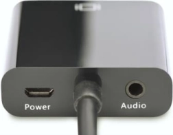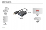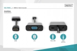 Univerzalni adapter DIGITUS pretvara signal HDMI u VGA i istovremeno nudi 3,5 mm audio izlaz. Podržava Full HD 1080p, radi na principu plug & play i ne zahtijeva upravljačke programe – idealno za povezivanje prijenosnih računala, reproduktora i igraćih konzola sa starijim monitorima i projektorima s VGA priključkom.