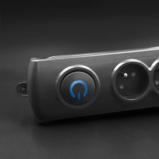 Osvijetljeni prekidač omogućuje trenutno isključivanje svih uređaja bez saginjanja – idealno na podu uz radni stol ili TV set.