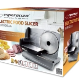 Električna sjeckalica Esperanza Mortadella opremljena je metalom presvučenim kromom i niklom, što joj osigurava dug vijek trajanja i jednostavno održavanje. Veliki nehrđajući nož promjera 19 cm lako reže namirnice na ujednačene kriške.