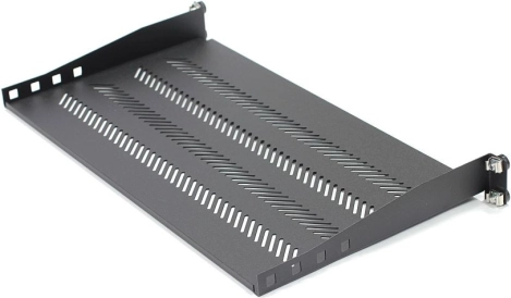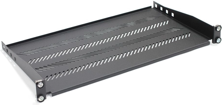 Ova crna 19" rack polica (483 × 250 mm) dizajnirana je za ugradnju u telekomunikacijske i mrežne ormare. Omogućuje jednostavno odlaganje manjih desktop uređaja, pribora ili dokumentacije koji nemaju vlastite rack nosače. Perforirano izvedenje podržava optimalnu ventilaciju i pomaže održavati stabilnu temperaturu unutar ormara.