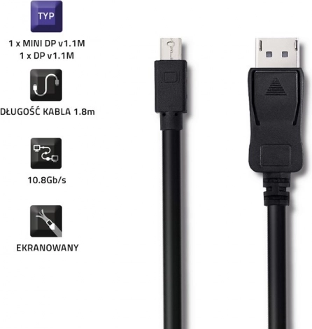 Zahvaljujući kvalitetnom oklopu i niklanim konektorima signal je stabilan i otporan na smetnje. Standard DisplayPort 1.1 podržava razlučivost do 4K pri 30 Hz, u Full HD-u do 144 Hz, a dodatno i 8 audio kanala za surround zvuk. Zaštita DPCP osigurava siguran prijenos zaštićenog sadržaja.
