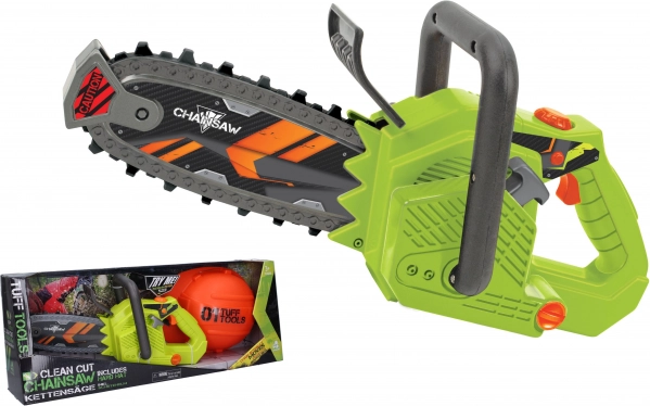 Ova dječja motorna pila Tuff Tools idealna je za djecu koja vole igru majstora ili drvosječe. Pritiskom na bočnu tipku pila se “pokreće”, a okidač aktivira kretanje lanca i efektne zvukove rezanja koji igri daju dodatnu dozu autentičnosti.