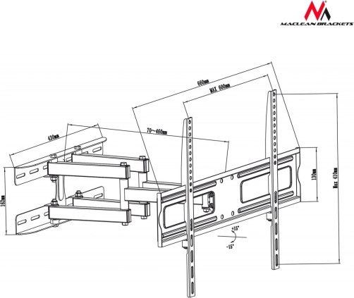 S držačem Maclean MC-762 lako ćete pričvrstiti svoj televizor na zid i u potpunosti iskoristiti njegove mogućnosti. Ovaj specijalni držač kompatibilan je s različitim markama, kao što su Sony, LG, Samsung, Philips i druge. Držač je prikladan za ekrane u VESA standardu od 100x100 mm do 600x400 mm. U pakiranju je kompletan set montažnih vijaka i upute za montažu na hrvatskom jeziku.