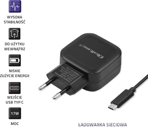 Qoltec dvostruki USB punjač 17W s USB-C kabelom za učinkovito punjenje dvaju uređaja istodobno.