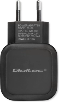 Qoltec dvostruki USB punjač 17W s USB-C kabelom