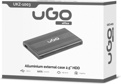 Kompaktno vanjsko kućište UGO za 2,5" SATA diskove nudi brzo povezivanje putem USB 2.0 s brzinom prijenosa do 480 Mb/s. Zahvaljujući funkciji plug and play odmah je spremno za uporabu, ima LED indikaciju rada, a u pakiranju se nalazi i zaštitna futrola. Idealno rješenje za siguran i praktičan prijenos i sigurnosno kopiranje podataka.