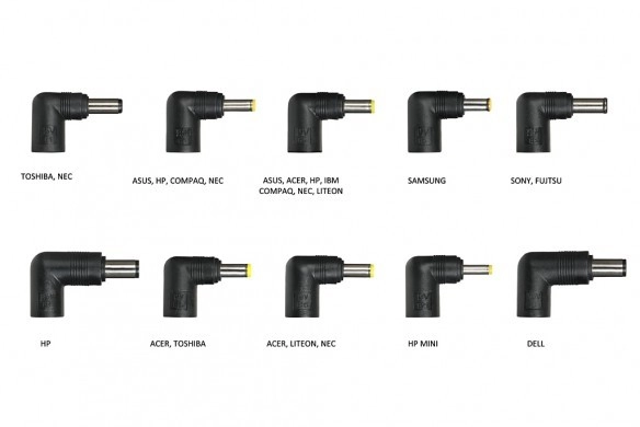 U pakiranju je 10 izmjenjivih tipova za marke kao što su ASUS, ACER, DELL, HP, TOSHIBA, SAMSUNG, SONY i druge – jedno rješenje za više prijenosnika.