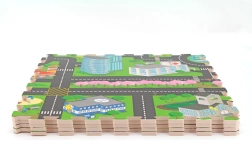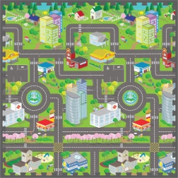 Ovaj pjenasti tepih – puzzle s motivom grada pretvara sobu u razigrano i sigurno okruženje. Zahvaljujući mekoj EVA pjeni ublažava udarce, izolira hladnoću s poda i djeci pruža udobno mjesto za puzanje, sjedenje i prve korake.