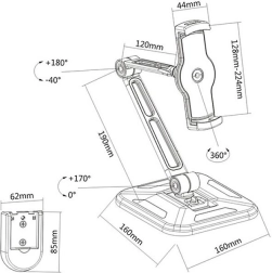 Univerzalni nosač s rukom za tablete koji omogućuje praktično postavljanje na radni stol ili montažu na zid. Kompatibilan s većinom tableta veličine od 4,7'' do 12,9'' te nudi jednostavno podešavanje orijentacije i nagiba.
