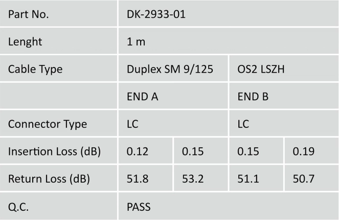 Patch cord je opremljen LC konektorima na obje strane, osiguravajući veliku brzinu prijenosa podataka i jednostavnu montažu.
