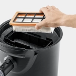 Sastoji se od ravnog naboranog filtra, metalnog filtra i filtra za veće nečistoće. Model AD 4 Premium dodatno ima zaseban ispušni filtar. Jednostavno vađenje filtra bez kontakta s nečistoćama.