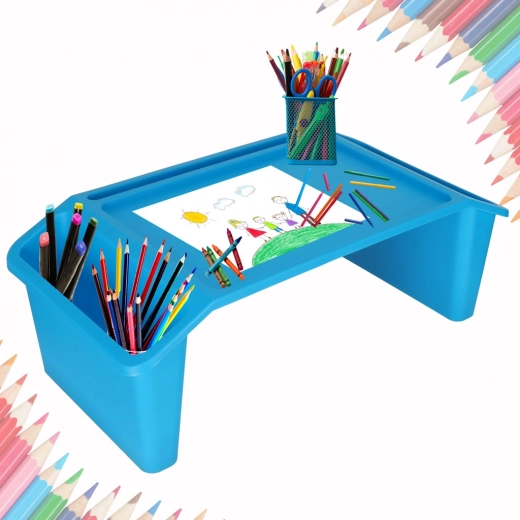 Uživajte u udobnosti pri radu i opuštanju bilo gdje u domu. Ovaj plavi prijenosni stolić za krilo pruža stabilnu i ravnu površinu za prijenosno računalo, knjige ili tablet, dok bočni pretinci drže kabele, olovke, slušalice ili bilješke pregledno organiziranima. Idealan za kauč, krevet i dječje stvaralaštvo.