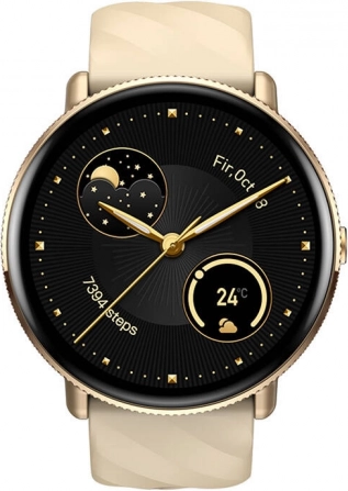 Zlatno metalno kućište i bež remen daju satu moderan izgled i stil. Zahvaljujući dodirnom sučelju, navigacija je jednostavna.