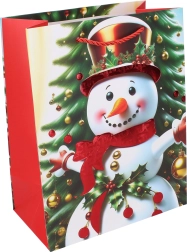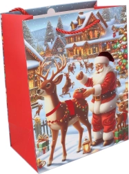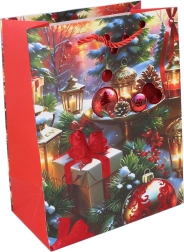 Olakšajte si pakiranje božićnih darova uz elegantnu poklon-vrećicu veličine L. Zahvaljujući čvrstom materijalu i praktičnim ručkama sigurno prenosi i veće te teže pakete. Moderni božićni motivi svakom daru daju svečan izgled.
