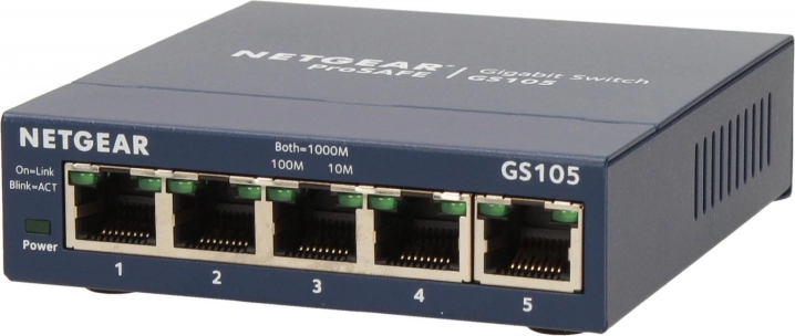 NETGEAR ProSAFE GS105 je pouzdan neupravljani 5‑portni gigabitni switch u metalnom kućištu, idealan za proširenje žične mreže. Pruža stabilnu vezu s propusnošću do 1000 Mb/s na svakom portu i tih rad bez ventilatora, pa je odličan i za stol i za ormare/ormariće.