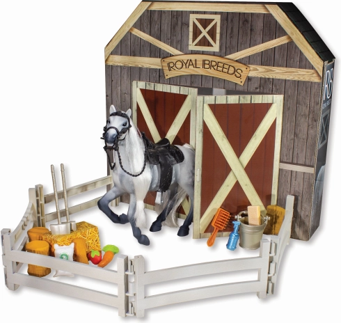 Ovaj set sadrži Konja Royal Breeds veličine 17 cm s interaktivnim značajkama koje će se svidjeti svakom djetetu. Otvarajući stražnji dio pakiranja proširuje mogućnosti igre i pretvara se u staje:
