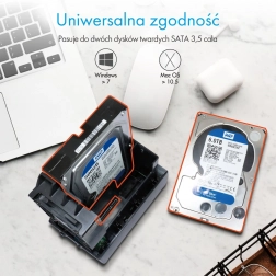Vanjsko kućište ICY BOX omogućuje sastavljanje snažnog i sigurnog spremišta podataka od para 3,5" SATA diskova i tamo gdje nedostaje integrirani RAID kontroler – primjerice na prijenosnicima ili starijim računalima. Zahvaljujući odabiru načina RAID 0 (striping), RAID 1 (mirroring) i LARGE (spajanje diskova) lako prilagodite kapacitet, performanse i zaštitu podataka svojim potrebama.