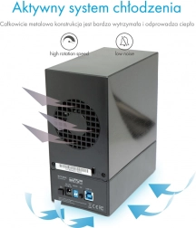 Jednostavna zamjena diskova bez kompliciranog rastavljanja te 60 mm ventilator za stabilne temperature i dulji vijek trajanja HDD-a.