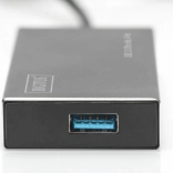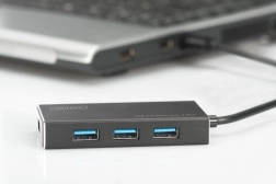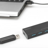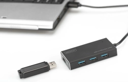 Proširite povezivost svog prijenosnika ili računala uz 4-portni USB 3.0 hub DIGITUS. Omogućuje istodobno povezivanje tipkovnice, miša, USB memorije, čitača kartica i drugih perifernih uređaja te zadržava visoku brzinu prijenosa podataka do 5 Gbit/s.