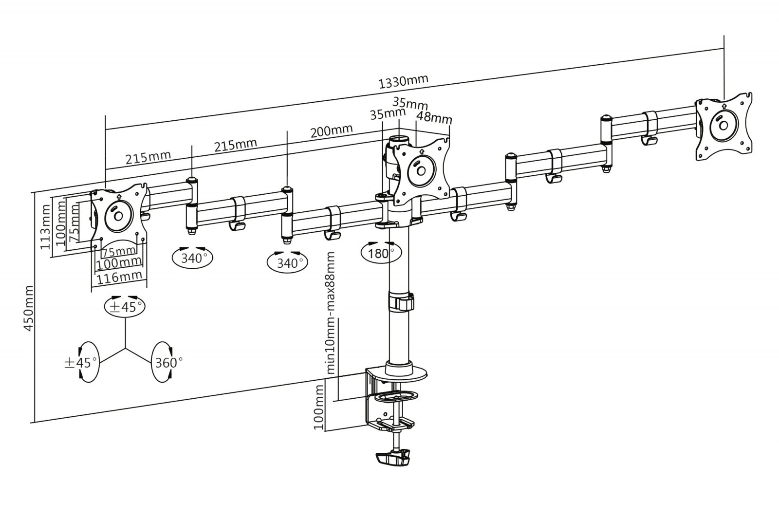 Stalak omogućuje rotaciju monitora za 360° te podešavanje u vertikalnom i horizontalnom smjeru u rasponu od 45°.