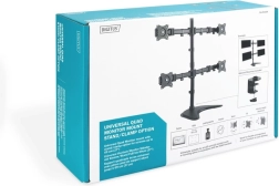 Stalak za četiri monitora savršen je izbor za organizaciju radnog mjesta i povećanje produktivnosti. Možete spojiti do četiri monitora ili televizora zahvaljujući otvorima u standardu VESA (75x75, 100x100, 200x100), što olakšava montažu zaslona dijagonale do 27 inča.