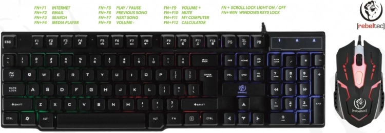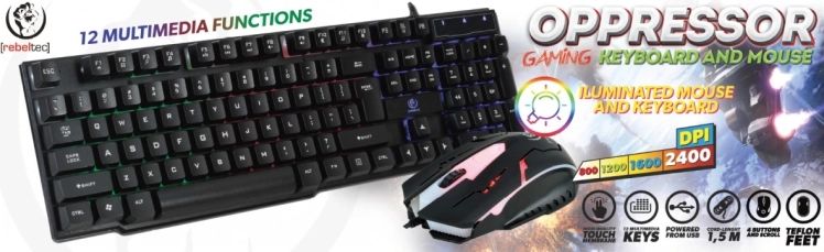 Gaming set REBELTEC OPPRESSOR idealan je izbor za igrače i kućnu upotrebu. Puna tipkovnica sa 104 tipke nudi višebojno osvjetljenje s mogućnošću isključivanja, praktičan Windows Lock i udoban raspored US QWERTY. Kvalitetna izrada i kabel od 1,5 m osiguravaju stabilnu vezu bez kašnjenja.
