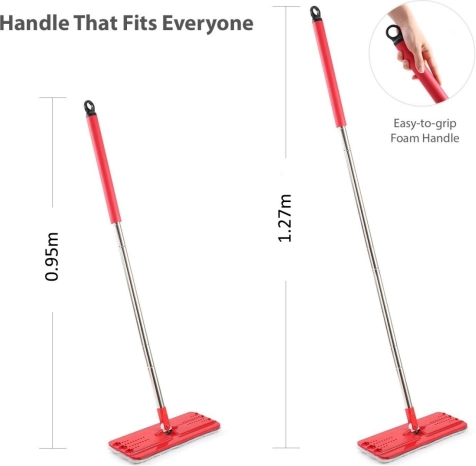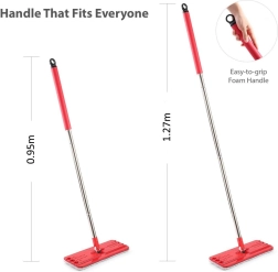 Set je izrađen od izdržljive plastike i spreman je za različite površine uključujući drvene podove, pločice i keramiku. Teleskopska šipka u rasponu 95–127 cm prilagođava se vašoj visini i tipu čišćenja. U pakiranju su 2 zamjenske navlake od mikrovlakana koje učinkovito zadržavaju prašinu i sasušenu nečistoću te se lako održavaju.
