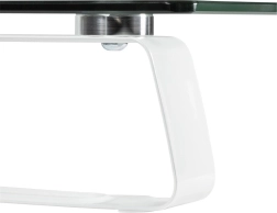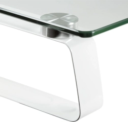 Prozirno staklo debljine 5 mm s minimalističkim linijama vizualno olakšava stol te istovremeno stvara prostor ispod postolja za tipkovnicu ili dokumente.