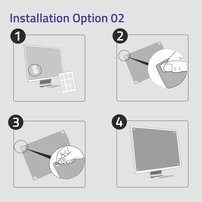 Ugradnja je brza i intuitivna: odaberite prianjajuće prozirne trake za lijepljenje izravno na zaslon ili samoljepljive kopče za pričvršćivanje na okvir monitora. Filtar je namijenjen za 23" monitore s omjerom stranica 16:9.