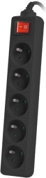 Produžni kabel 1,5 m crni s 5 utičnica i prekidačem