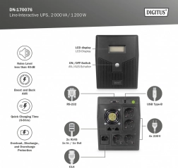 UPS Line-Interactive tvrtke Digitus nudi kompaktne dimenzije te osigurava visoku pouzdanost i učinkovitost zahvaljujući mikroprocesorskom upravljanju. Jednostavan je za upotrebu i pruža učinkovitu zaštitu kućnim ili uredskim računalnim sustavima od gubitka i oštećenja podataka.