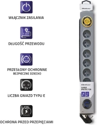 Siva prenaponska letva Quick Switch idealan je odabir za dom, ured i radionicu. Nudi 8 utičnica za istodobno napajanje više uređaja i 1,8 m dovodnog kabela za fleksibilno postavljanje. Integrirani, osvijetljeni nožni prekidač omogućuje udobno upravljanje napajanjem bez potrebe za saginjanjem.