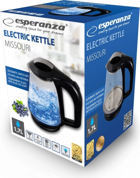 Čajnik ESPERANZA MISSOURI idealan je za svaku kuhinju – od jutarnje kave do popodnevnog čaja. Zahvaljujući integriranoj grijaćoj ploči lako se održava, a automatsko isključivanje nakon postizanja vrenja povećava sigurnost pri uporabi.